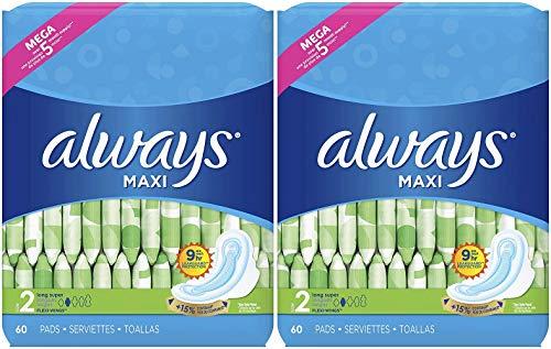 - Pack of 2, Each is 60 count, Total 120 Long Super Pads With Wings
