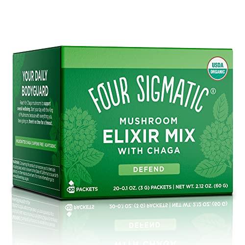 - BE WELL Mushroom Elixir with Chaga contains a high dose, 1,500mg of organic chaga mushroom powder to support your immune system; Adaptogen eleuthero, a superfood powder, for overall well-being; Rose hips for a rich source of natural vitamin C.