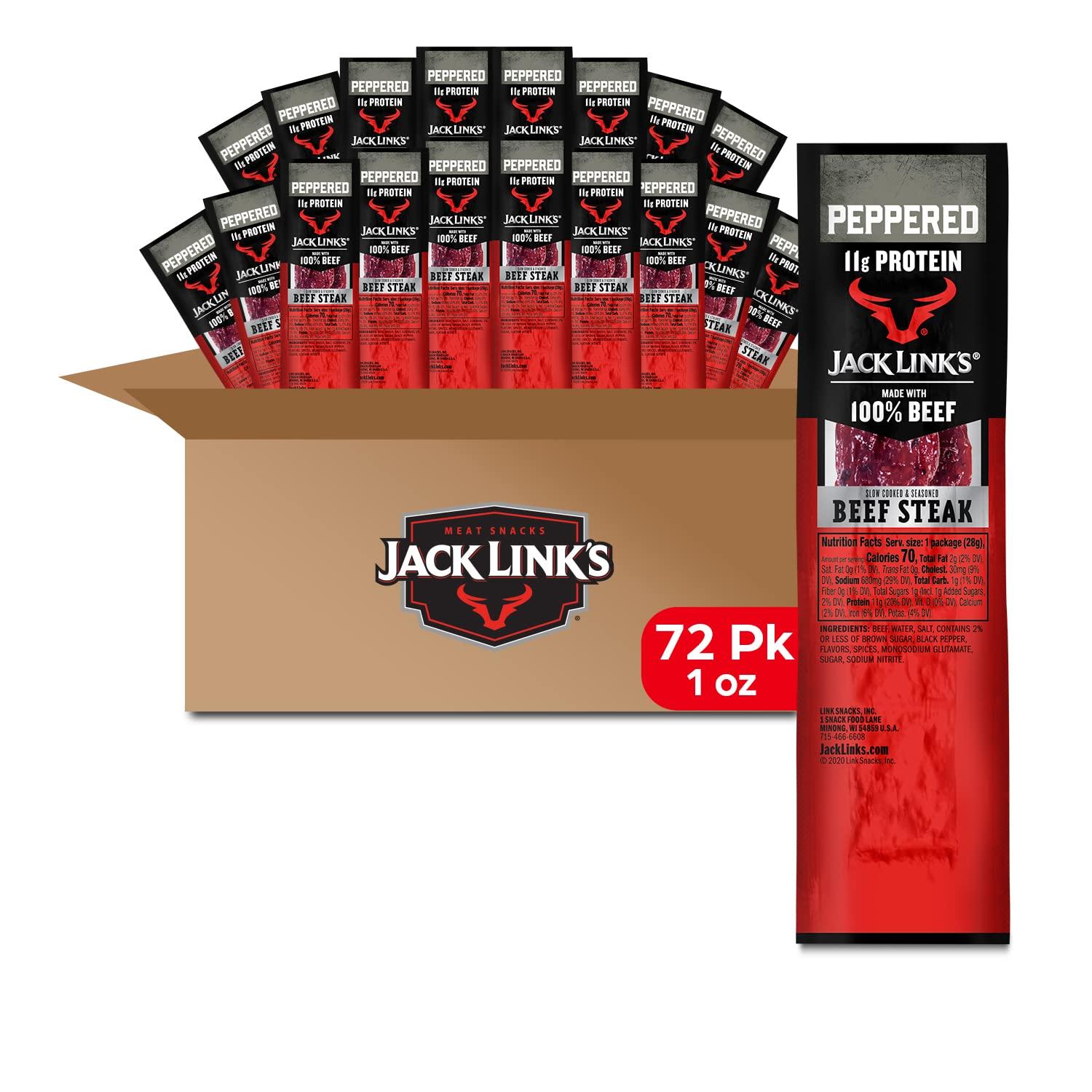- MADE WITH 100% BEEF: Jack Links beef steaks are made with 100% premium beef and our signature blend of seasonings. Perfect meat snack for any meat lover or anyone looking to add a bit of protein to their day. Great snack to keep in the office