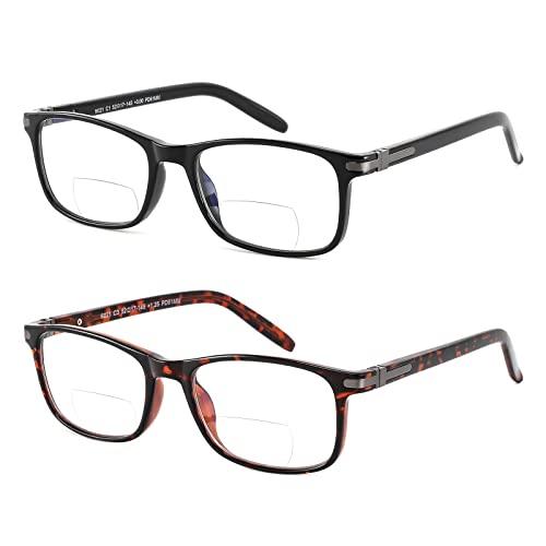 - 2 PACK PROGRESSIVE BIFOCAL READERS:Bifocal reading glasses for men women contain two classic and versatile frame colors, black and Tortoiseshell color. Suitable for all kinds of facial men forms. You can think of bifocal glasses as two pairs of glasses in one: a pair of scratch-resistant reading glasses for everyday wear, and a pair of anti-blue light blocking for reading. Bifocal reading glasses for indoor or outdoor people with presbyopia problems.