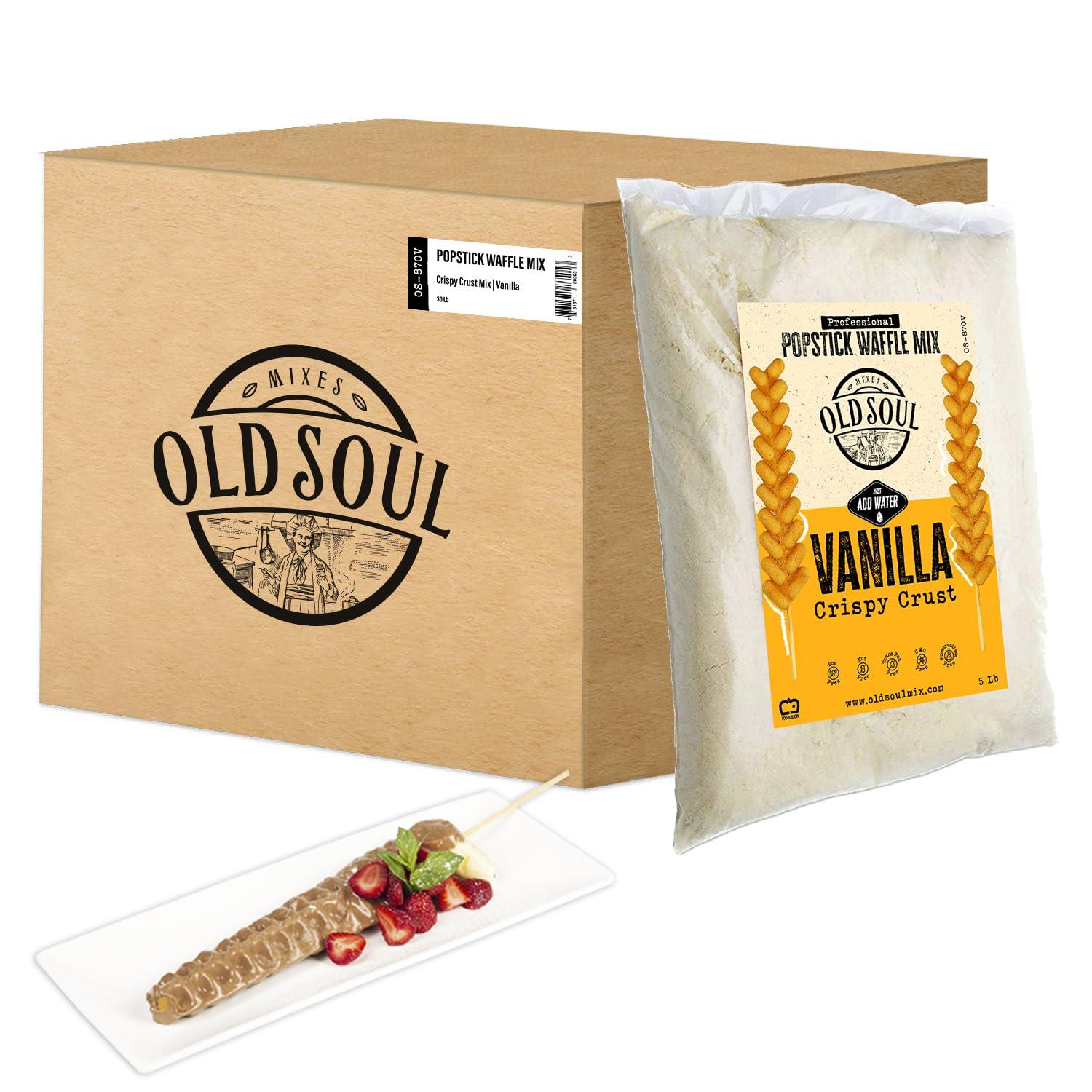 - COMMERCIAL USE: With a package of this Waffle Mix, you can cook up to 672 big Waffles on a Stick with vanilla flavor. We sell the dough mixes in boxed of 30 lbs (13,5 kg). The product contains no GMO, no trans fats, and no preservatives. The mix contains all the ingredients needed for a delicious waffle, so adding something else is up to you!