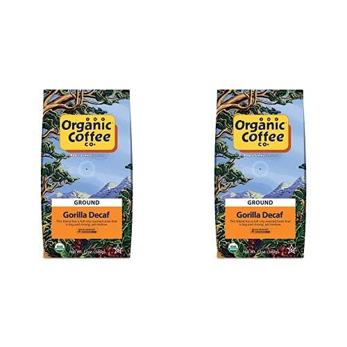 Organic Coffee Co. Gorilla Decaf Ground Coffee 12 Ounce Medium Light Roast Natural Water Processed Decaffeinated USDA Organic (Pack of 2)