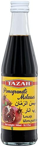 Tazah Lebanese Pomegranate Molasses 10 fl oz bottle What is Tazah Pomegranate Molasses? Pomegranate Molasses also called paste and syrup interchangeably has a thick consistency like balsamic vinegar. It has a sweet-sour taste and is made by boiling natural pomegranate juice. Pomegranate Molasses intensifies flavors and is the perfect companion for every recipe. It adds aroma flavor color and acidity to you favorite sauce dressing glaze and marinades.