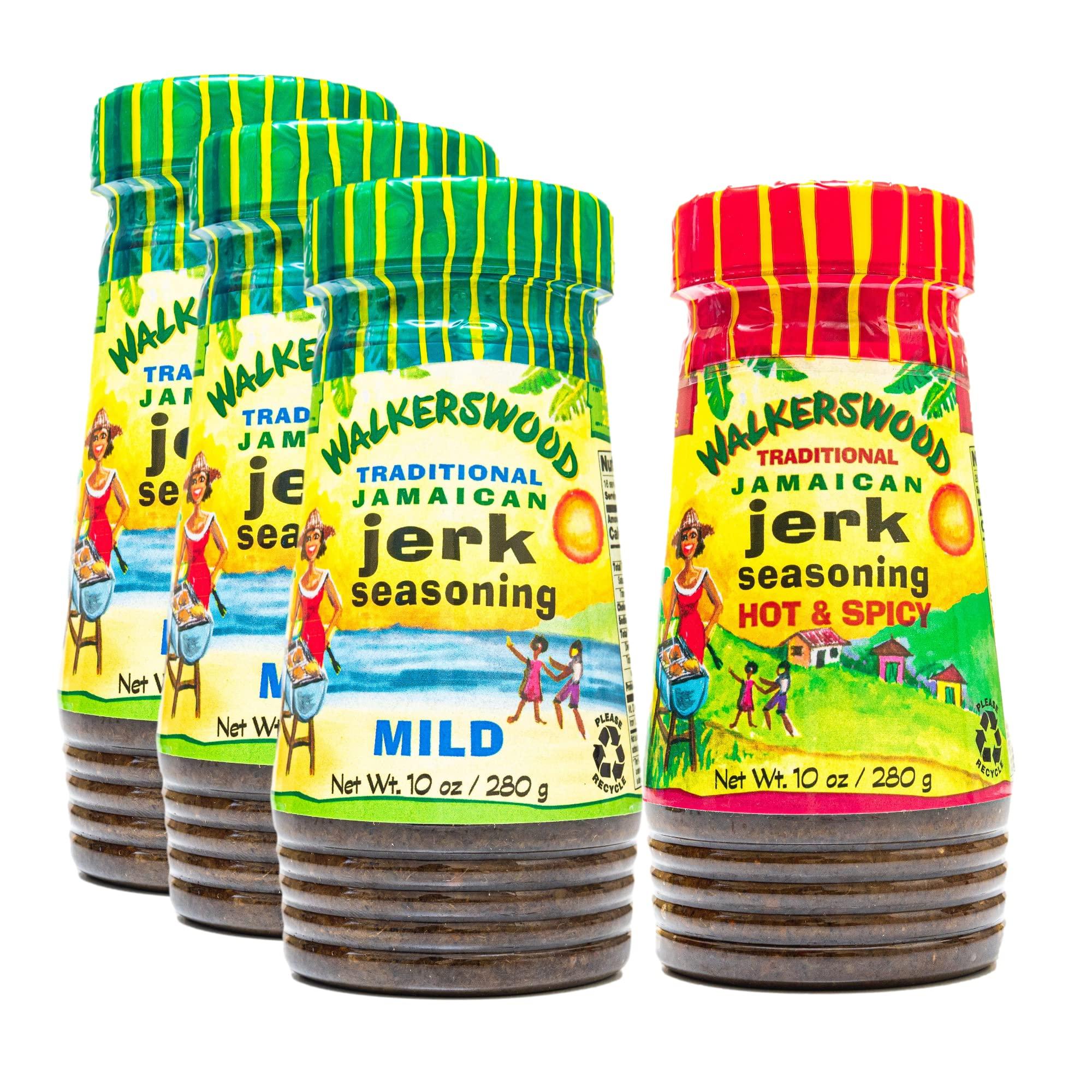 Walkerswood Traditional Jamaican Jerk Seasoning, 1 x Hot & Spicy and 3 x Mild Combo Pack Jamaican Jerk Seasoning, 10 oz (Pack of 4)